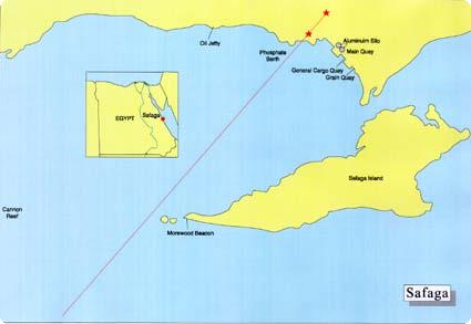 Vessels should approach the northern boundary of the island at sunrise, and at Safaga Port early in the morning. A lighthouse, clearly viewed at the distance of 1.6 km. is built on the southern cape of the island. Ship masters should turn around the cape, and keep 925 m. distanced from the obviously observed coral reefs.