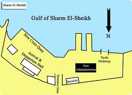 Location: Sharm El-Sheikh port is 360 km. distanced from Suez Governorate, and 490 km. from Cairo. It is located on top of the triangle of Sinai Peninsula, at the confluent of Suez and Aqaba bays at South Sinai Governorate Port Specifications