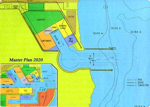 Navigational Channels: 3650m. long, 250 m. width, 17-18 m. depth entrance channel at the turning circle access.
